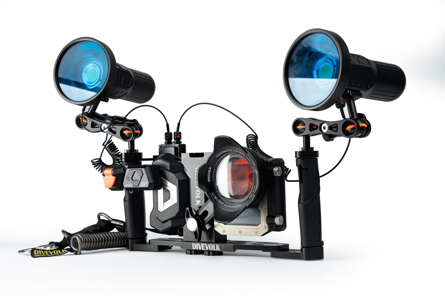 El control remoto es una pequeña caja que se coloca en una de las asas del soporte de tu Divevolk, de modo que puede presionar los botones y mantener estabilidad sin soltar tu Divevolk. Puedes conectar una o 2 luces simultáneamente.
