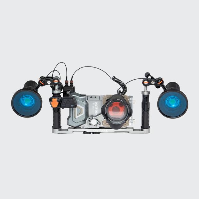 Esta avanzada carcasa submarina cuenta con un cuerpo robusto de aleación de aluminio, que garantiza una durabilidad excepcional y una estética elegante. Diseñada de forma única con un adaptador de lentes integrado y monturas duales de rosca de 1/4”, permite acoplar una amplia variedad de lentes, filtros, bandejas y trípodes.