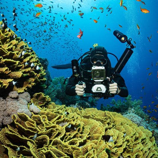 Ya sea que bucees por pasión, hagas snorkel, trabajes en el mar o simplemente quieras capturar tus inmersiones, este kit Divevolk está diseñado para llevar tu contenido más lejos, más profundo, y más seguro.